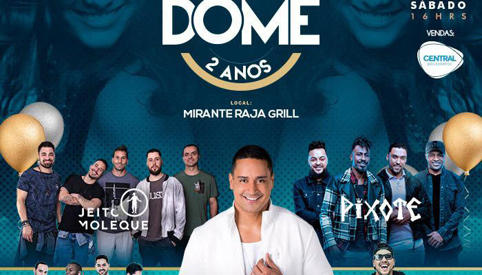 Os 2 anos do Dome Lounge Bar serão comemorados em grande estilo numa festa que promete ficar para a história. É que no dia 13 de abril, sábado, a partir das 16h, o Mirante Raja Grill (Av. Raja Gabáglia, 3375 – São Bento, Belo Horizonte – MG) será palco para um evento em celebração ao aniversário da balada que conquistou os mineiros, regado de muito pagode, axé e animação. Para o line up já foram confirmados os shows das bandas Pixote, Jeito Moleque e Harmonia do Samba, além de Felipe Hott e Samba Brother.